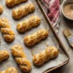 The dough is rolled into thin ropes and then twisted, braided, or folded into S-shapes and rings before baking. The shaping is done by hand and does not require any special tools, just a light touch to keep the ropes even so they bake uniformly.
