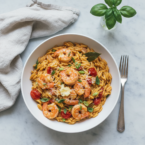 A modern take on a Greek comfort food classic. Creamy orzo pasta with succulent shrimp, bursting with fresh herbs.