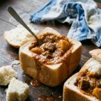 A Durban street food classic! Spicy lamb curry served in a hollowed-out loaf of bread.