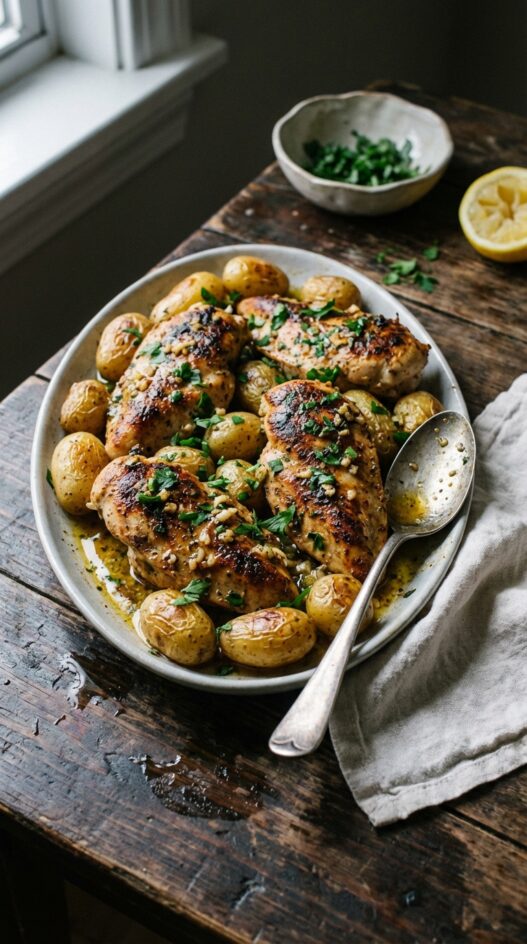 Crispy potatoes and tender chicken baked with a fiery Lebanese spice blend. A quick, flavorful weeknight meal.