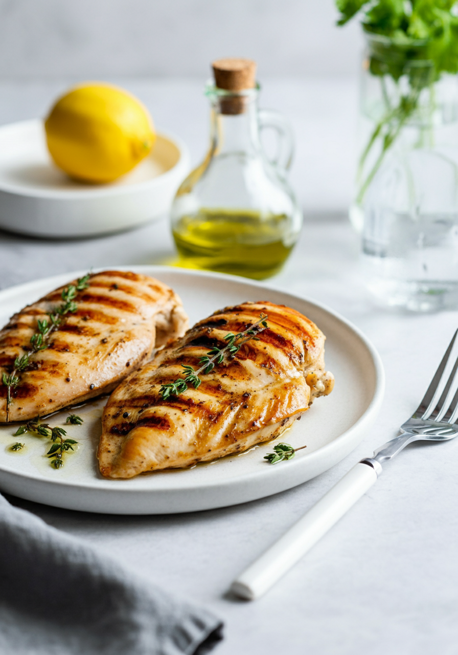 A perfectly juicy and flavorful grilled chicken breast, marinated in a bright mixture of fresh lemon, garlic, and thyme. This simple recipe is ideal for a healthy and quick summer meal.