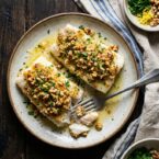 This was fantastic. Made it with haddock instead of cod but it was perfect. Browned so nicely and the walnuts gave it a great crunch. Didn’t have fresh parsley so substituted dried dill and it was great.