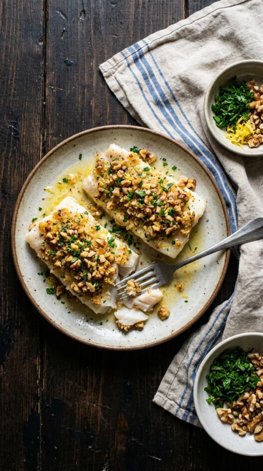 Lemon and Walnut Crusted Cod