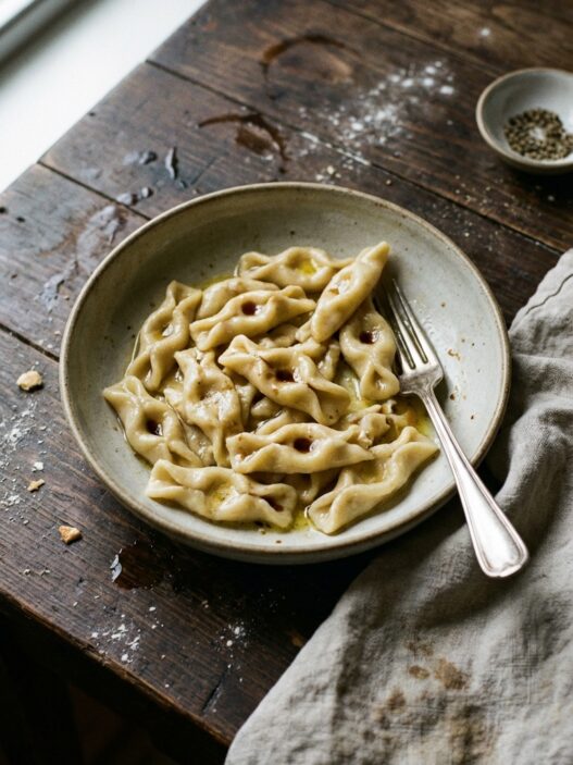 Short pasta shapes like fusilli or penne work well, as they can hold onto the pesto better.