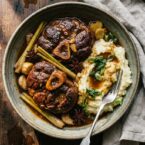 Serve the Bison Osso Buco hot, preferably with a side of mashed potatoes. Garnish with green onions for a burst of color and freshness, perfectly complementing the rich, hearty flavors of the bison.