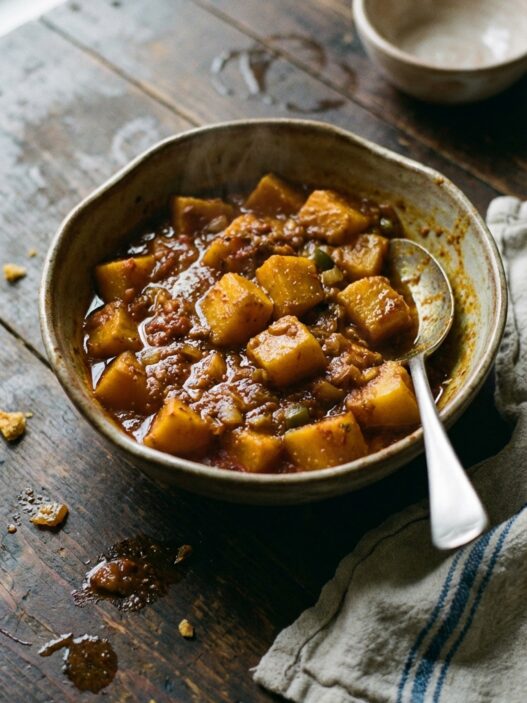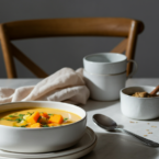 A velvety and comforting soup blending the sweetness of butternut squash with hearty potatoes. A hint of lemon brightens up this perfect autumn meal.