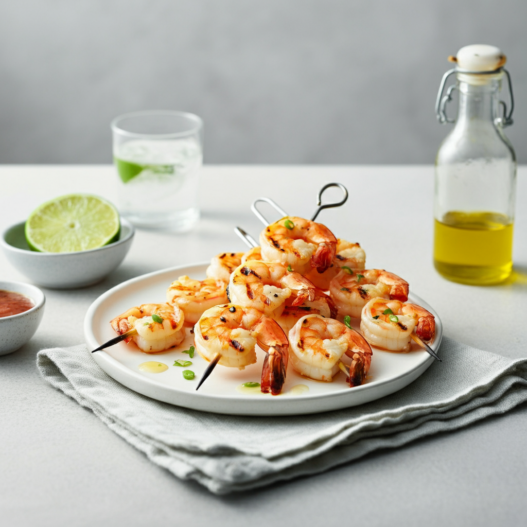 Quickly marinate your shrimp in a spiced honey and lime sauce and toss on the grill. Enjoy a summer meal in minutes with a glass of white wine.