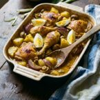 - Scoop potatoes and onions onto a baking dish. Place chicken pieces on top. Slot in the eggs and mushrooms in between. Drizzle the remaining coconut milk into the dish.
