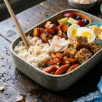 Easily prep ahead a vegetarian bento box loaded with protein, fun flavors and a variety of textures.