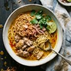 So when you’re cooking khai soi, taste, taste, taste! It’s all about the balance. Don’t be afraid to tinker, adding more or less of anything to coax all the flavors in line. And don’t get lazy and skip the garnishes, because they really take the dish to the next level.