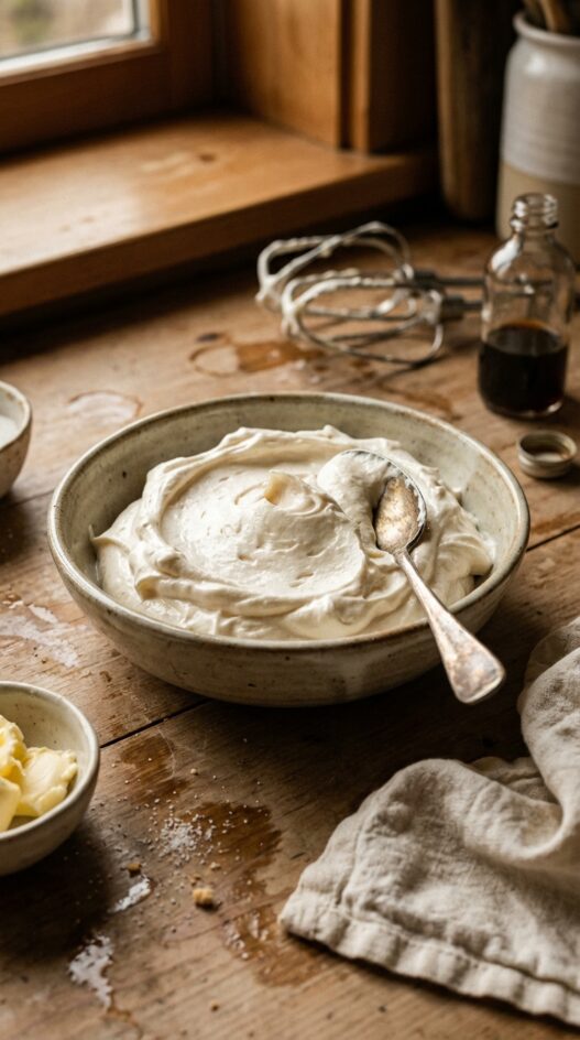 Add flavorings after the buttercream is fully emulsified and smooth. Vanilla, fruit curd, melted dark chocolate, or espresso all incorporate well.