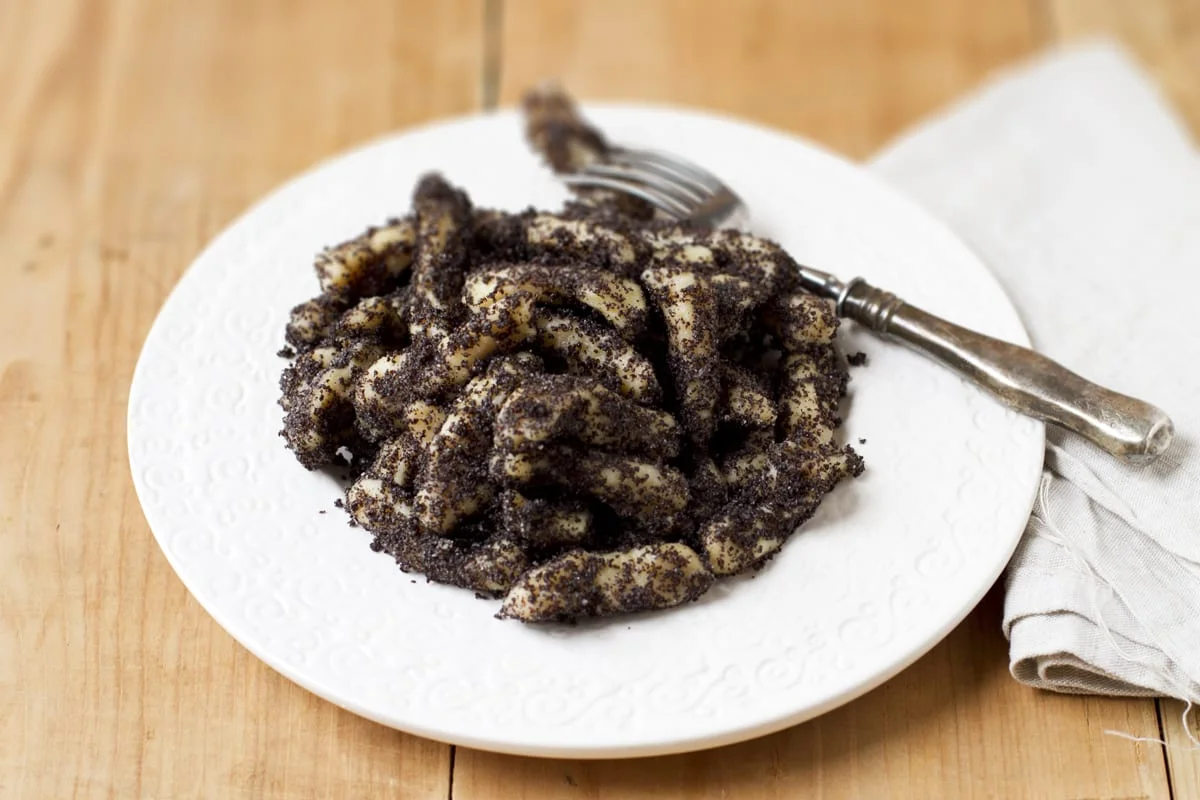 Mákos nudli is a traditional Hungarian noodle dish featuring tender potato dumplings coated in a sweet and nutty poppy seed mixture.
