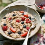 Creamy oats soaked overnight with berries and maple syrup. A quick and healthy make-ahead breakfast.