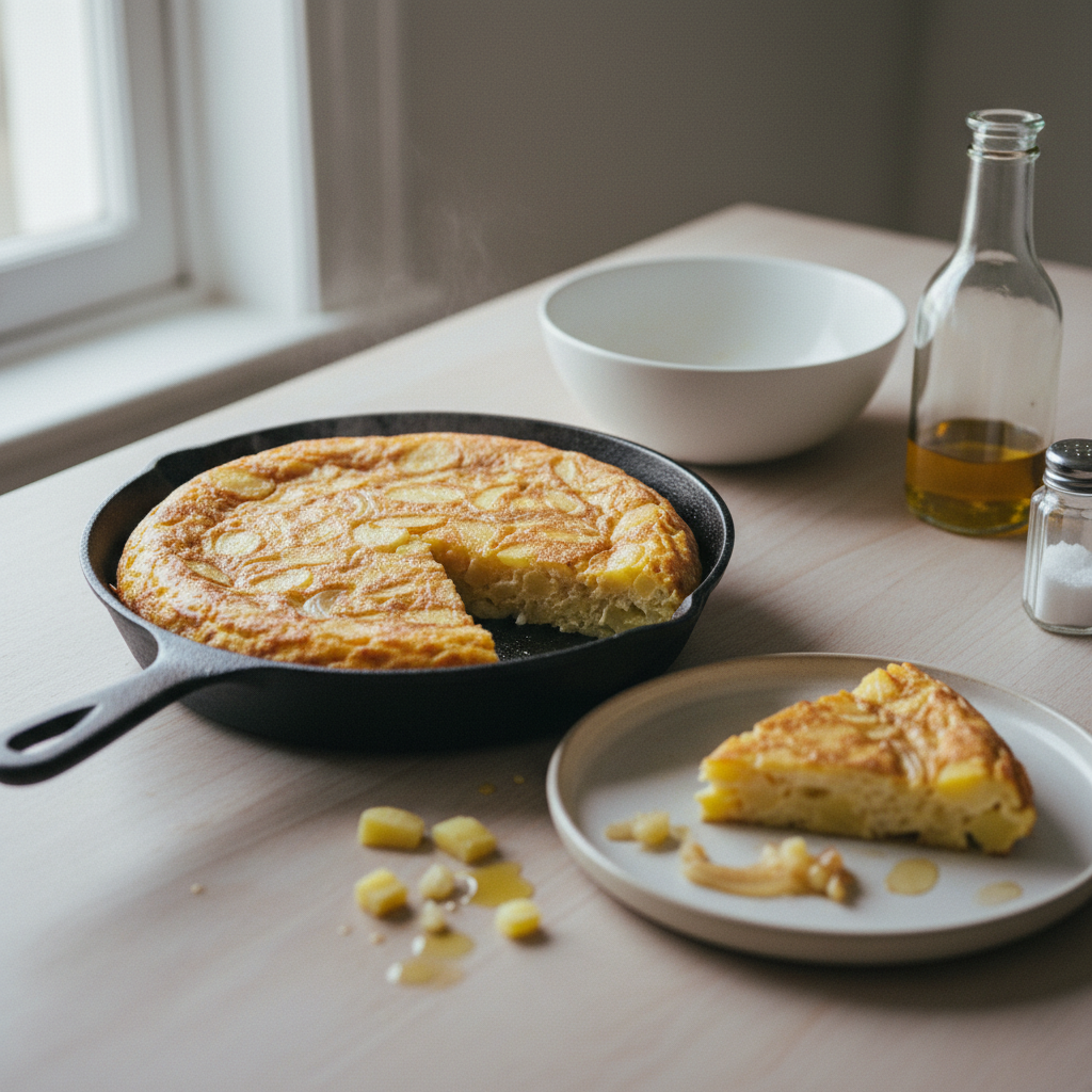 Room temperature is actually the traditional way to serve it in Spain, and it gives the eggs time to firm up into clean, cohesive slices. It also means you can make it an hour or two ahead of time without losing anything.
