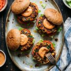 The burgers take about 30 minutes to make. The vegetables are sautéed before they are added to the black beans. About half of the beans are kept whole while the remainder are mashed. This helps bind the burgers and gives them texture. After forming the burgers, a quick sauté in a hot pan adds a crispy browned crust and enhances their flavor. Served on whole wheat buns with a spicy yogurt sauce, thick slices of tomatoes and crisp lettuce, Sweet Potato and Black Bean Burgers will be a welcome addition to your dinner table. I suggest making a double or even triple batch as they freeze well and will make for a quick meal on a busy weeknight.