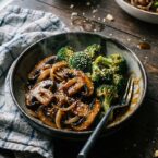 These meatless Teriyaki Mushroom Bowls are sweet and salty with a homemade teriyaki glaze to coat the hearty portobellos, caramelized onions and broccoli, served over rice or noodles. Faster than takeout, these mushroom bowls take no time at all to prepare.