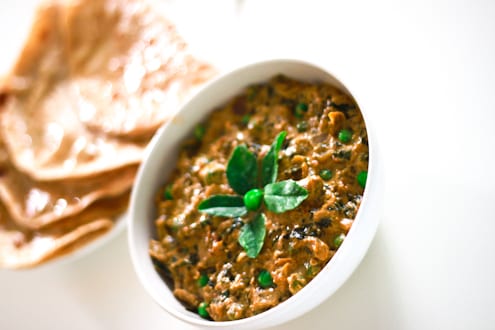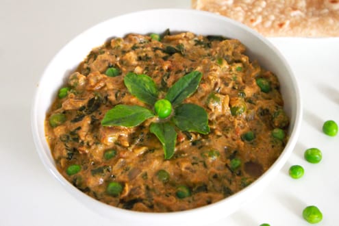 Methi Matar Malai is a rich and creamy Indian dish featuring fresh fenugreek leaves, green peas, and a blend of aromatic spices, finished with a touch of cream.