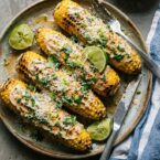 - Squeeze lime juice over the corn and top with Parmesan cheese.