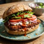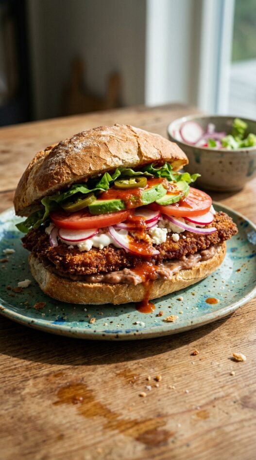 A torta is a Mexican sandwich. Milanesa refers to a breaded and fried cutlet — typically pork, beef or chicken — named after the Milanese-style schnitzel brought to Latin America by Central and Eastern European immigrants. This recipe uses thinly pounded pork cutlets coated in seasoned breadcrumbs and fried, then assembled on a bolillo roll.