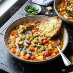 Hearty vegetarian minestrone, easily customized with meat. Perfect for a cozy weeknight dinner.
