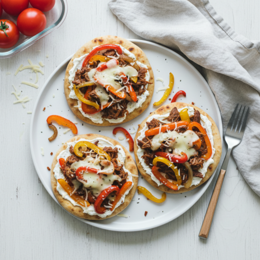 These fun mini pizzas are perfect for a weeknight dinner. Slow-cooked fajitas get a cheesy, creamy upgrade!