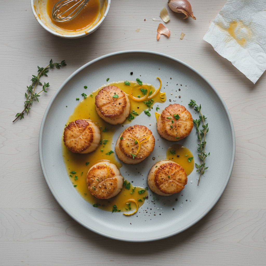 Pat the scallops very dry with paper towels before they go into the pan and make sure the pan is fully preheated over high heat with just a thin layer of oil. Crowding the pan traps steam, so cook in batches if needed and avoid moving the scallops until they release naturally after about 90 seconds.