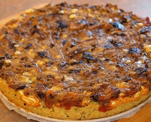 - Pour the mushroom mix on top of the base (already with cream cheese on it) and spread evenly.