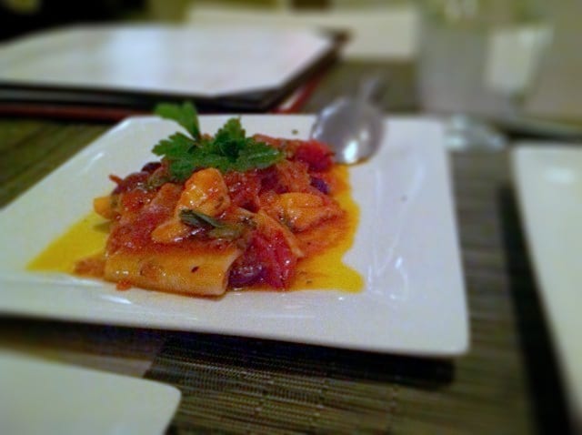 The whole wheat Fettuccine with chestnuts, porcini mushrooms, sausage and pecorino cheese is a dish that combined together make for an excellent dish, typical of Italian homemade traditional cuisine. The presentation of the dish is superb, and the match of the mushrooms with chestnut is a perfect marriage, just like sausage and pecorino cheese. As an entreé I had Polpo alla Griglia (grilled Mediterranean octopus with olives, lemon dressing and mashed potatoes), the nice sized plate was very well presented and the delicacy and softness of the octopus didn’t require the use of a knife; just a fork was sufficient. It wasn’t greasy or mushy nor did I feel the slippery texture that octopus skin sometimes can have.