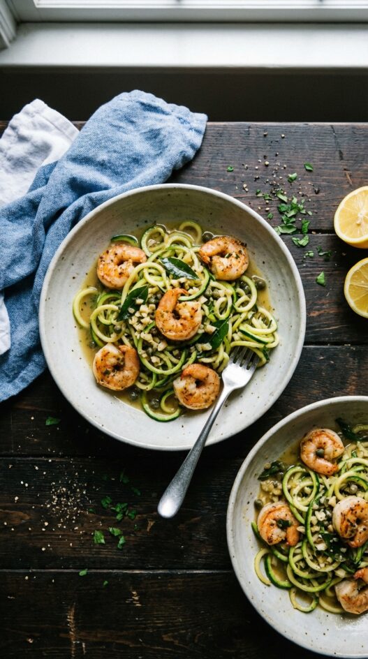 However, if you want a full carb free meal, hold onto that shrimp and take out the spiralizer to make some zoodles! Of course, you could just boil some pasta or cook some orzo but zoodles are so refreshing and healthier.