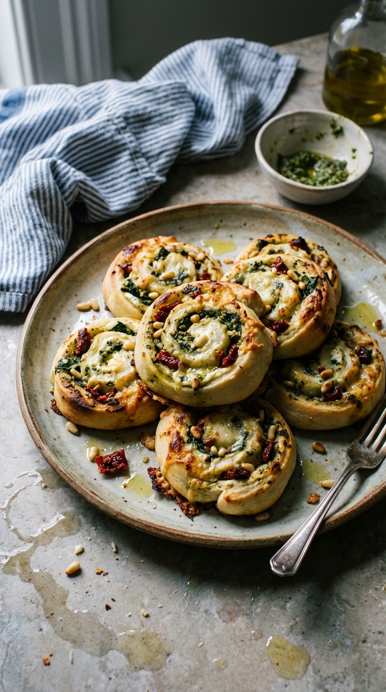 National Pinot Grigio Day: Sun-Dried Tomato and Spinach Pesto Pinwheels