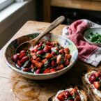 - Serve immediately on toasted bread slices with your favorite cheese, or let the bruschetta marinate overnight.