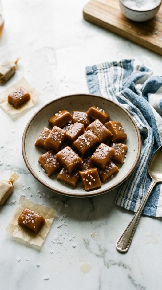 Honey brings a floral, slightly earthy sweetness that plain sugar lacks, and the salt sharpens both the honey flavor and the caramel itself. The result is a more layered candy than standard caramels.