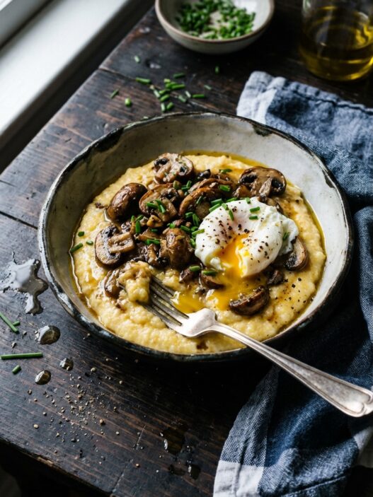 Forest meat: just mushrooms, potato strings, white rosemary sauce and rosemary bread.