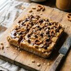 - Before serving, remove from the pan and slice into squares.