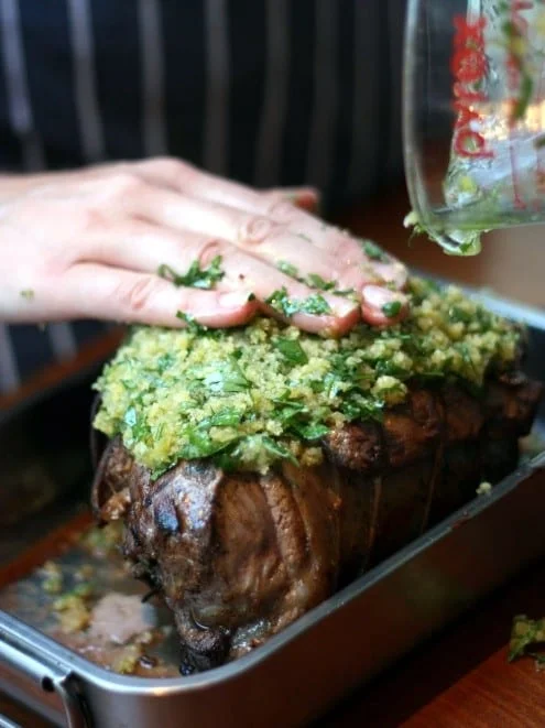 - Make the herb crust by combining all the ingredients, and then spread it over the top of the lamb.