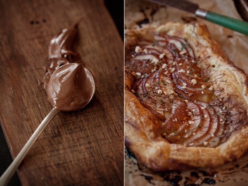 drizzle warmed nutella over a pear tart and sprinkle with finely chopped hazelnuts, or
