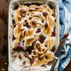 This grown-up version of s’mores is easy to bake up and I had a lot of fun swirling in the Nutella and then creating rows of halved raspberries.