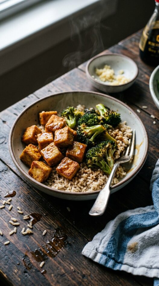 Crispy and flavorful, this vegan tofu and broccoli dinner satisfies a craving for takeout.