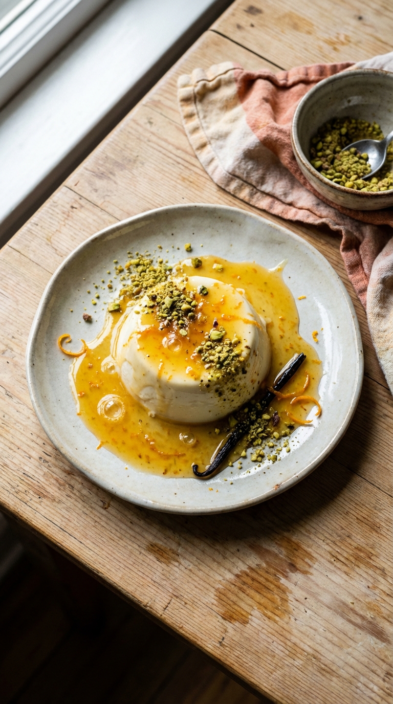 Orange Panna Cotta with Pistachios