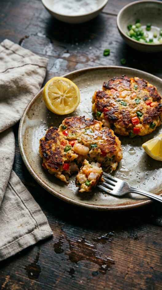 Crispy shrimp cakes bursting with flavor. Perfect for a summer meal or appetizer.