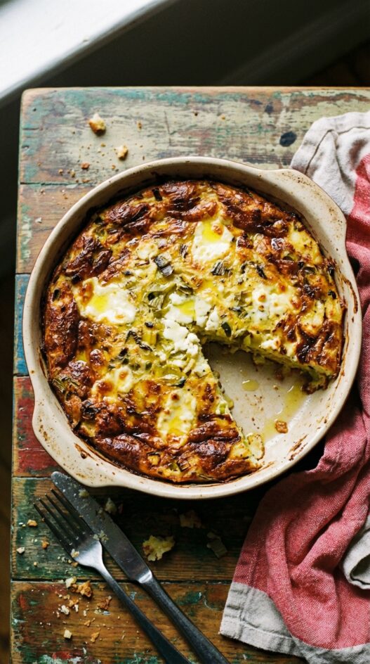 A comforting brunch frittata brimming with cheese and tender leeks. Perfect for a weekend morning or a special occasion.