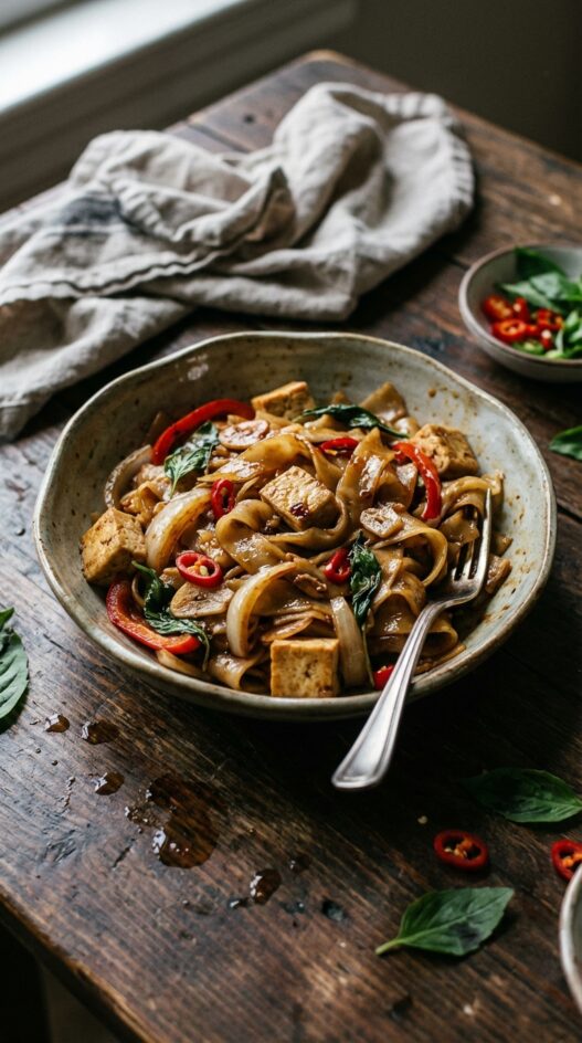 Wide fresh rice noodles are traditional and give the best texture. If you can’t find fresh ones, dried wide rice noodles soaked until pliable will work, but avoid thin vermicelli since they don’t hold up to high-heat stir-frying.