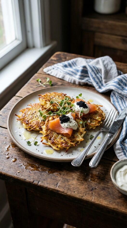 Parsnip Latkes with Smoked Salmon and Caviar