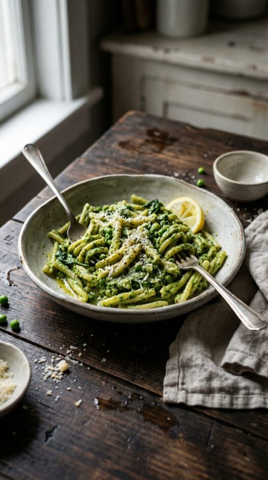 Pea and Spinach Pesto Pasta