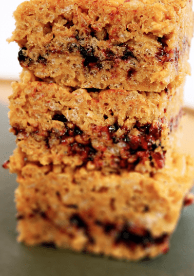 PrintPeanut Butter and Jelly Crispy Brown Rice Bars