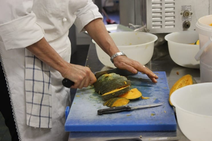 The other four workers were doing a variety of tasks. Leo, Oscar partner, is making the gelato and working with the machines. A woman is skinning pumpkin for their “Stracciatella di Zucca” (pumpkin and chocolate), flavor of the month.