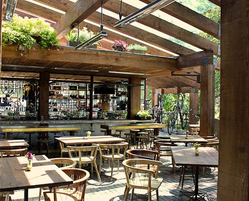 Pedaler’s Fork sits at the edge of Los Angeles County in the cycling enthusiast neighborhood of Calabasas. Although it’s mere miles from the hectic, fast paced world of Hollywood, the golden glow pouring though the expansive floor to ceiling windows, the symphony of bullfrogs and the trickle of the neighboring creek gives this gorgeous space a transcendent feeling, as well a reason for Los Angeles residents to brave the 101 North.