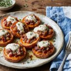 - Spoon 1 teaspoon of bacon jam onto each sweet potato medallion.