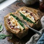 This vegetarian goat cheese sandwich is packed with sweet apples, spinach, strawberry jam and creamy Chevre D’Argental French goat cheese on a whole grain bread. It can be ready in less than 5 minutes and is the perfect sweet and savory combo to pack and take to work or school.