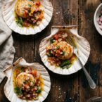 - Spoon the tomato mixture over each scallop.